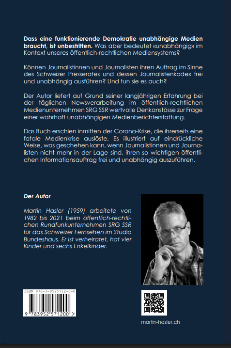 Der Autor liefert auf Grund seiner langjährigen Erfahrung bei der täglichen Newsverarbeitung im öffentlich-rechtlichen Medienunternehmen SRG SSR wertvolle Denkanstösse zur Frage einer wahrhaft unabhängigen Medienberichterstattung. Das Buch erschien inmitten der Corona-Krise, die ihrerseits eine fatale Medienkrise auslöste. Es illustriert auf eindrückliche Weise, was geschehen kann, wenn Journalistinnen und Journalisten nicht mehr in der Lage sind, ihren so wichtigen öffentlichen Informationsauftrag frei und unabhängig auszuführen.